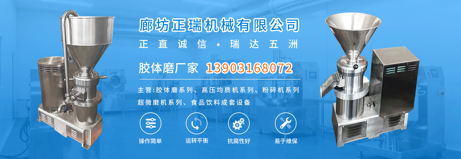 公司主要產(chǎn)品有JMS系列膠體磨、JJ系列高壓均質(zhì)機(jī)、FS系列粉碎機(jī)、CWM系列超微磨機(jī)、PG破骨機(jī)系列以及食品飲料成套設(shè)備等。產(chǎn)品廣泛應(yīng)用于食品、醫(yī)藥、化工等領(lǐng)域,暢銷(xiāo)國(guó)內(nèi)并出口歐美、非洲、東南亞等國(guó)家,深受用戶(hù)好評(píng)。